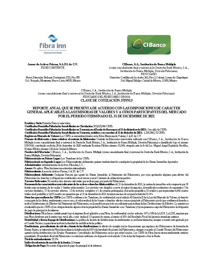 Si usted desea dejar de recibir mensajes promocionales de nuestra parte puede solicitarlo al Tel: 52 (81) 5000 0200; protecciondedatos@fibrainn.mx